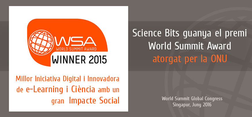 Science Bits rebrà el premi en la categoria d’e-Learning & Science en el Congrés Mundial dels WSA a Singapur, el 29 de juny de 2016. A la cerimònia dels premis hi haurà representants de l’ONU, experts en TIC i personalitats del sector privat.
