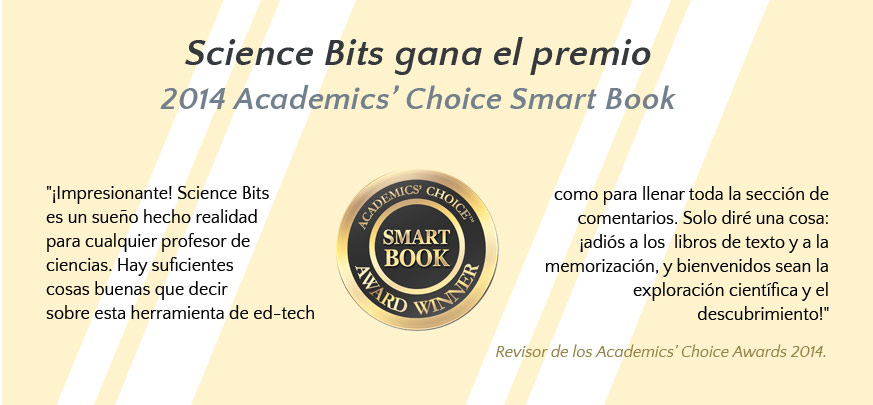 Science Bits ha recibido el prestigioso galardón 2014 Academics’ Choice Smart Book Award, un premio a la calidad educativa reservado solo al contenido multimedia más creativo e innovador.
